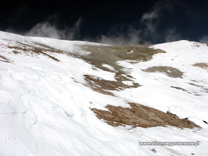 Ciężarówką dojechaliśmy do pierwszego schronu na 3050 m. Kolejnego dnia wynieśliśmy depozyt na 4220 m do schronu drugiego i zeszliśmy na noc do pierwszego obozu. Dwa dni potem, po nocy spędzonej w drugim obozie i przeczekiwaniu wietrznej pogody, część z nas wyniosła depozyt na 4870 m, w miejsce zaplanowanego obozu trzeciego. Kolejny dzień był dniem odpoczynku.