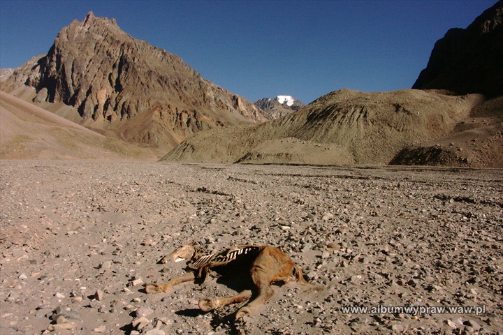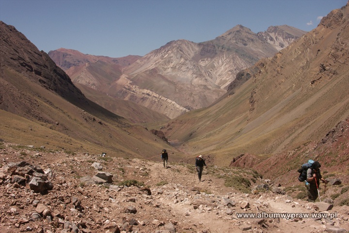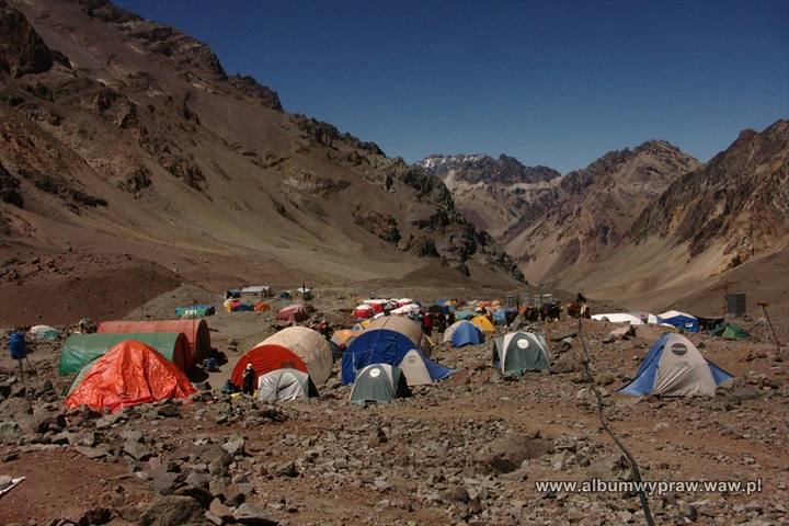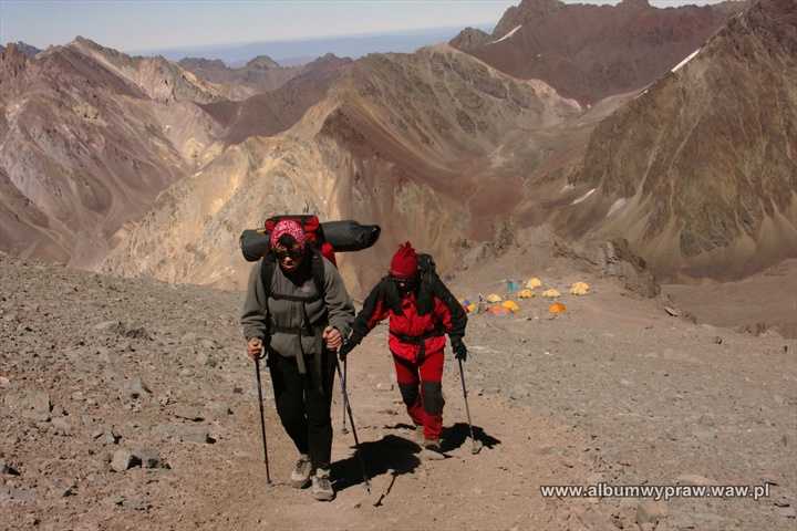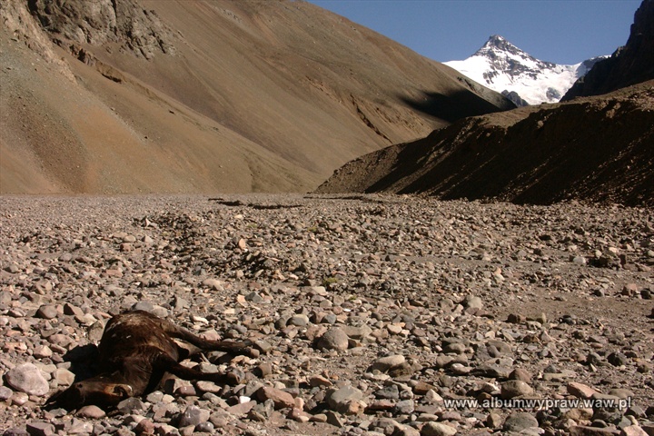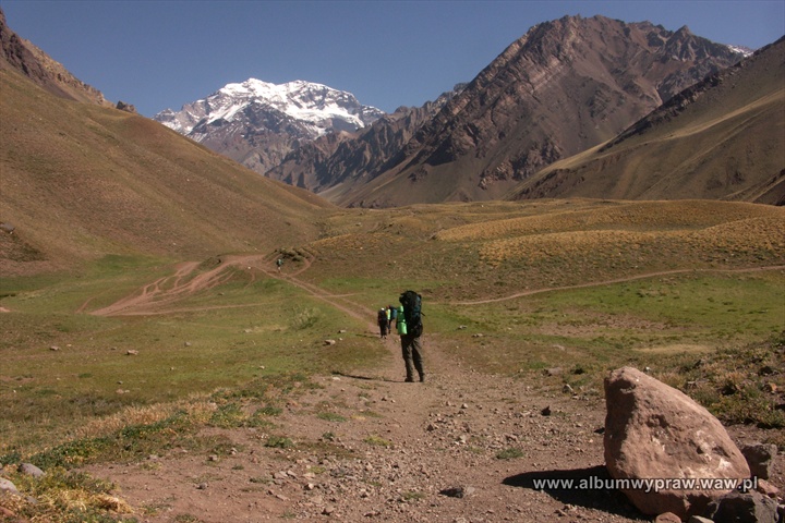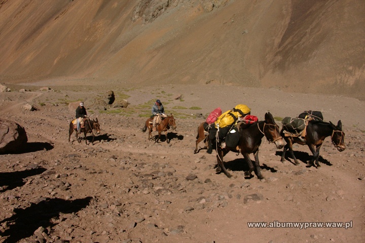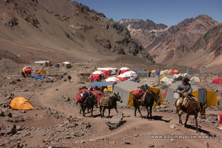 Wyprawę zaczyna się doliną Vacas. Transport do bazy Plaza Argentina na wysokość 4200 m odbywa się na grzbietach mułów.