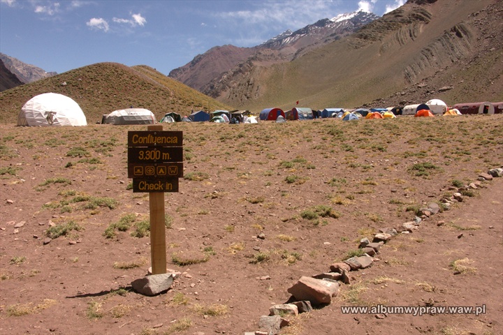 do miejsca na biwak zwanego Confluencia na wysokości 3300 m, by tam pozostać na noc.