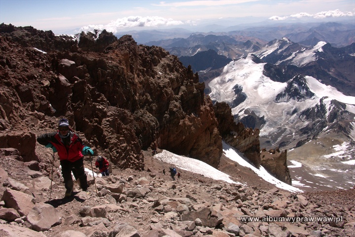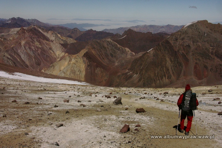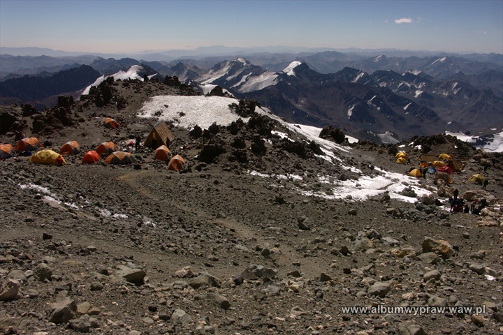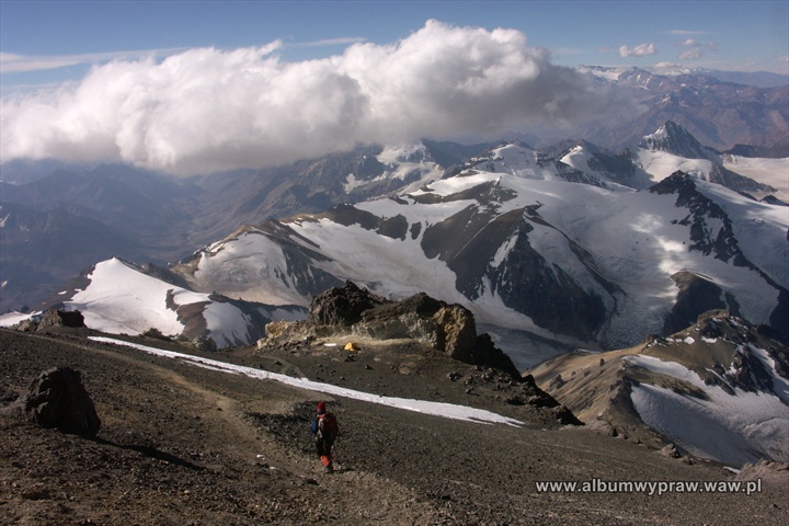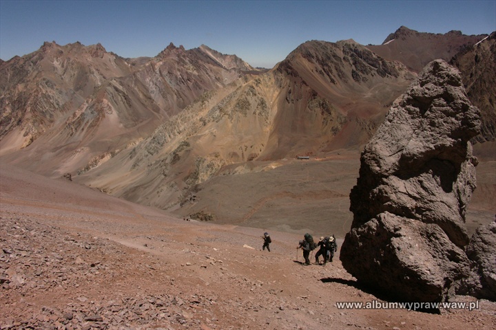 Większość późniejszych zdobywców Kamiennego Wartownika - tubylcy tak zwą Cerro Aconcagua o wysokości 6962 m - po 4 godzinach marszu dociera