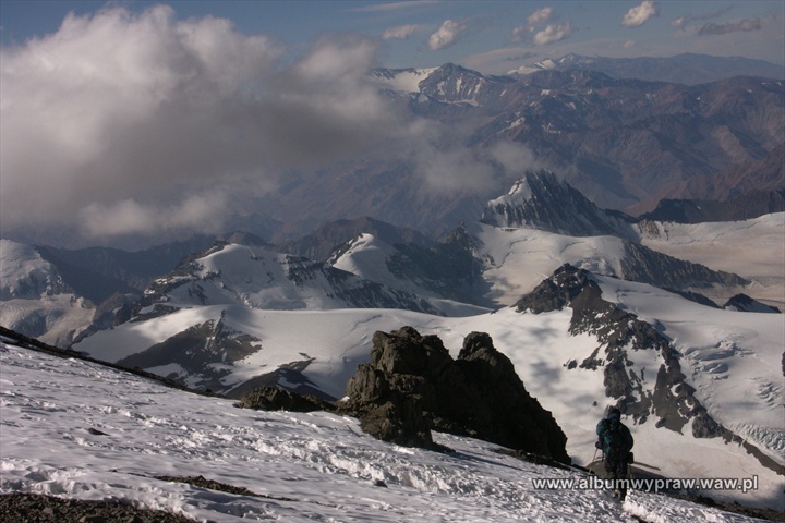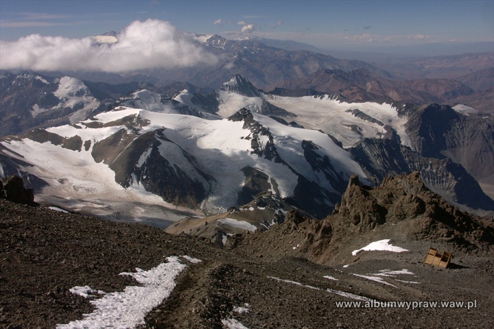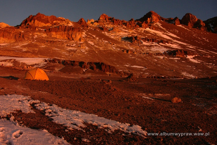 czy też lodu do stopienia. Zakładałem, że wejście z bazy Plaza de Mulas 4300 m od razu do obozu II na przełęczy Nido de Condores 5380 m