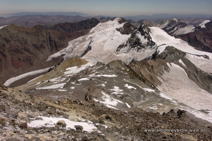 Następnego dnia likwidując nasze obozy zeszliśmy wraz z całym sprzętem do bazy na Plaza de Mulas 4300 m. Niestety spotkała nas przykra wiadomość.