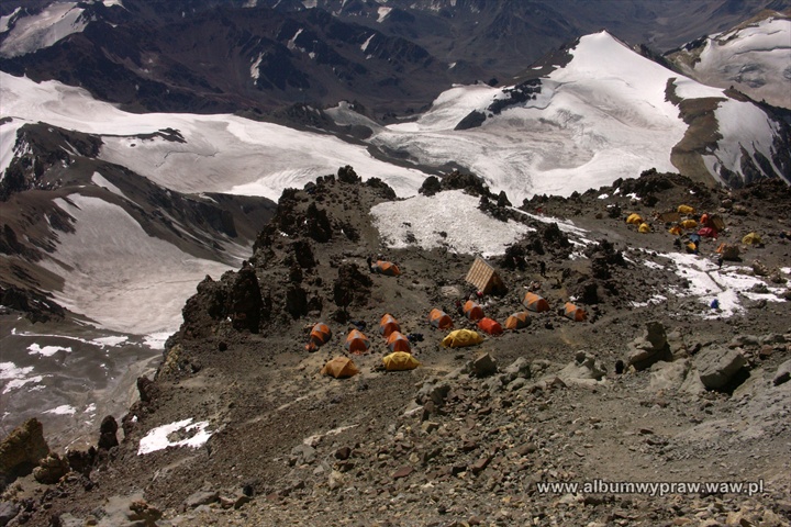 od rozpoczęcia akcji górskiej z bazy Plaza de Mulas. Z bazy na szczyt są cztery obozy pośrednie: