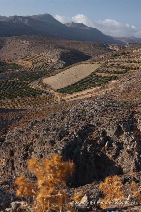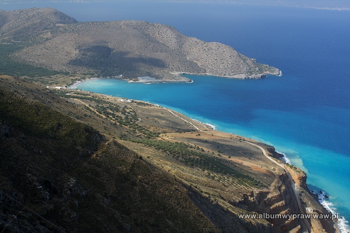 KRETAWylądowaliśmy w stolicy Krety i rozpoczęliśmy naszą tygodniową eskapadę. Heraklion w starożytnej Grecji był portem Knossos. Później w latach 1204 -1669 panowała na Krecie Republika Wenecka. W okolicach portu łatwo rozpoznać wenecką architekturę, wraz z murami i twierdzą broniącą dostępu do portu. Drugie oblicze ukazał nam Heraklion, gdy wypożyczonym samochodem wyjeżdżaliśmy z miasta udając się na wschód wyspy. Wyjazd przez miasto z plątaniną zapchanych samochodami ulic i mało ciekawą zabudową nie należał do najprzyjemniejszych. Jednak z każdym przebytym kilometrem Kreta ukazywała inne oblicze. Nawet w położonym niedaleko stolicy miasteczku hotelowym Hersonisos, ujrzeliśmy ładne skalne nabrzeża, między którymi kryły się piaszczyste plaże. Jednak nas ciekawił najbardziej wschód i południe Krety. Odbijaliśmy z głównej drogi i wjeżdżaliśmy w głąb wyspy. Krajobraz wyspy zdominowany jest przez trzy potężne pasma górskie. Na zachodzie są to góry Lefka Ori, w centrum góry Oros Idi z najwyższym szczytem Psiloreitis, a na wschodzie położone są góry Oros Dikti. Właśnie w ich kierunku pojechaliśmy. Słoneczna wyspa Kreta po wjechaniu w góry nieoczekiwanie stałą się pochmurną i momentami nawet deszczową. Sławiące rejon górski Oros Dikti wiatraki tonęły w chmurach i zastanawialiśmy się, czy przypadkiem druga połowa października to dobry okres na podróż po wyspie słońca? Jednak im bardziej przybliżaliśmy się do morza, tym więcej było słońca. Wnętrze wyspy ukazało nam, jak ogromne znaczenie ma zakorzeniona u mieszkańców Krety tradycja. Centrum każdej wioski stanowi kafenion, miejsce spotkań mężczyzn, którzy przy kawie od samego rana dzień w dzień omawiają najważniejsze wydarzenia. Tutejsze uprawy nie wymagają codziennej pielęgnacji: oliwki rosną same, winorośl również, a kozy i owce nie zajmują im zbyt wiele czasu. To jest chyba jedyne wytłumaczenie, skąd mają tyle wolnego czasu i dlaczego są tak pogodnym narodem. Kreta słynie z ludzi gościnnych oraz z tradycji witania gości. Tradycja i kultura widoczna w muzyce, sztuce, potrawach i rzemiośle odgrywa ogromną rolę w obrazie wyspy. Z górskich wąskich dróg zjechaliśmy nad morze. Przejechaliśmy przez ostatnie większe miasto portowe Sitia, położone pośród nagich wzgórz na wschodnim wybrzeżu Krety. Sitia słynie z odbywającego się w połowie sierpnia Festiwalu Rodzynek. W tym właśnie okresie mieszkańcy przebrani w regionalne stroje paradują ulicami miasta, ciesząc się z udanych zbiorów. My byliśmy za późno, by świętować wraz z tubylcami. Pojechaliśmy na sam wschodni kraniec Krety. Dotarliśmy na słynną plażę Vai The Palm Beach, która jest jedną z największych atrakcji turystycznych. Rozsławiona pod koniec lat siedemdziesiątych ubiegłego wieku przez ostatnich Hipisów, wyróżnia się największym naturalnym lasem palmowym w Europie. Obecnie jest to plaża typowo komercyjna z płatnym parkingiem, leżakami, restauracją, mnóstwem plażowiczów, jednak mimo wszystko nadal jej piękno robi wrażenie, zwłaszcza z góry, gdy wchodzimy na pobliskie wysokie skały. Wschodnie krańce wyspy są słabo zaludnione, nieliczne górskie drogi, jakimi jechaliśmy w stronę południa wyspy, były puste długimi kilometrami. Serpentynami pięliśmy się do góry, to znów zjeżdżaliśmy na dół. Strome, skaliste nabrzeża z wdzierającym się w zatoki Morzem Libijskim zachwycały nas. Jak okiem sięgnąć wszędzie widoczne były gaje oliwne, w końcu Kreta słynie z najlepszej na świecie oliwy. Podróżując przez południową część wyspy zrobiliśmy przerywnik - oczywiście na wspinanie oraz turystyczne łazikowanie. Kreta jest górzysta, a najwyższy jej szczyt Psiloreitis ma 2456 metrów. W tym samym łańcuchu górskim Levka Ori leży słynny Wąwóz Samaria. Wyczytaliśmy jeszcze przed przyjazdem, że strome, wapienne ściany tego cudu natury wznoszą się na wysokość prawie 600 metrów, a dnem płynie górska rzeczka. Wąwóz Samaria ma 16 kilometrów długości, na jego terenie i w bliskiej okolicy, stosunkowo niedawno utworzono Park Narodowy Levka Ori. Bojąc się jego popularności, a co za tym idzie komercji i tłumów ludzi, wybraliśmy się do wąwozu Agiofarago. Właściwie jest o nim w sieci kilka zdań, nie jest tak znany i popularny. Początek drogi dnem wąwozu nie nastrajał optymistycznie. Większe pagórki, trochę kruchych, niskich skał, pomiędzy którymi pasą się kozy. Jednak wędrówka z każdym następnym krokiem stawała się ciekawsza, aż po jakiś 2 kilometrach wyrosły około 300 lub nawet 400 metrowe skały. Wbijał się w nie wąwóz Agiofarago, którego dnem okresowo musi płynąć rzeczka. Jej wyschniętym korytem, mając po obu stronach czerwone, skalne ściany, dotarliśmy do uroczej kapliczki. W jej pobliżu, co rusz słychać było, a czasami dało się podejść pół dzikie kozy. Najbardziej spektakularna była końcówka wędrówki. Nagle wąwóz Agiofarago skończył się uchodząc do morza. Plaża mocno wciętej w ląd zatoczki otoczona jest tam potężnymi skałami. Na plaży opalało się dosłownie kilku naturystów. Rajski krajobraz, spokój, cisza i radość, że udało się nam, choć na parę godzin, oderwać od komercji i tłoku. Ciężko było opuścić nam wąwóz Agiofarago. Dalej podążyliśmy wzdłuż południowego wybrzeża na zachód, do opuszczonej przez Hipisów w początku lat siedemdziesiątych wioski rybackiej Matala. Zatoczka otoczona z jednej strony żółtym urwiskiem skalnym, w którym wydrążono groty, które w latach 60 zamieszkiwali Hipisi, kiedyś musiała wyglądać uroczo. Niestety dzisiaj podobnie jak na Vai The Palm Beach zrobiło się tu komercyjnie, głośno i tłoczno, bo wioska rozrosła się. Ponieważ interesuje mnie starożytność, chciałem udać się do Knossos, które było pałacem legendarnego króla Minos