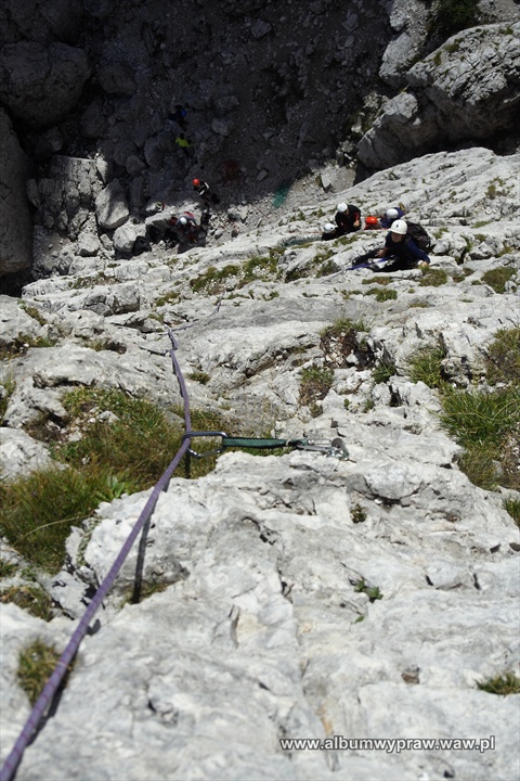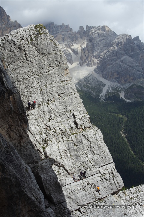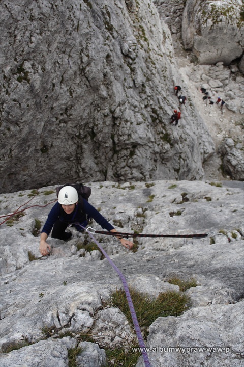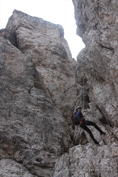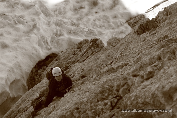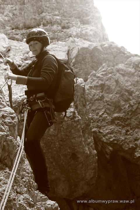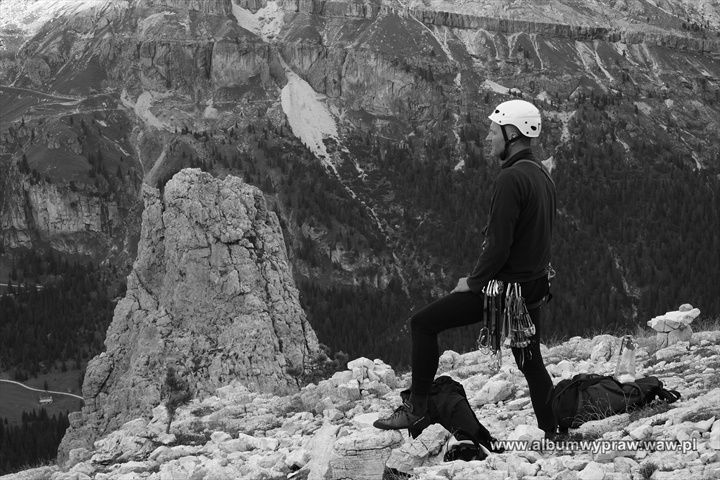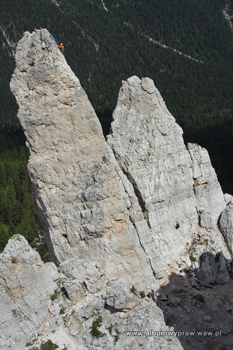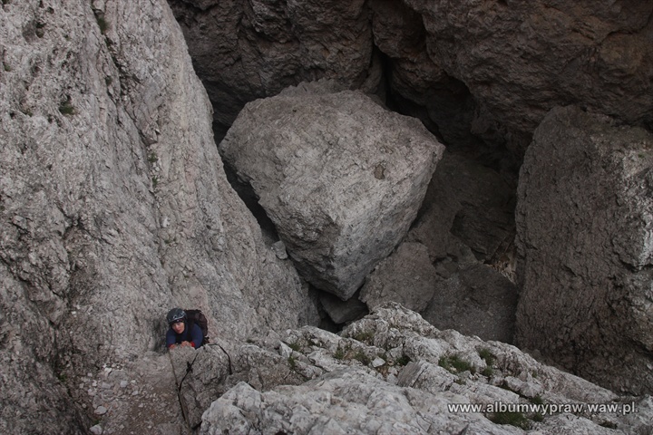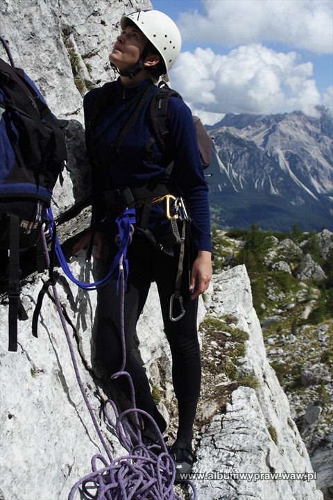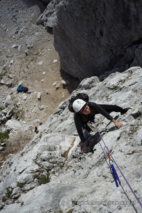 CINQUE TORRIGdzie leży Cinque Torri Cinque Torri znajduje się w regionie Cortina d_Ampezzo w północnych Włoszech, w samym sercu Dolomitów. Grupa skalna składa się z pięciu głównych turni, które wyrastają ze skalno-trawiastego płaskowyżu na wysokości około 2361 m. Rejon jest łatwo dostępny - można tu dotrzeć pieszo lub kolejką z przełęczy Falzarego, co czyni go bardzo popularnym zarówno latem, jak i zimą. Charakterystyka wspinania Najwyższą turnią grupy jest Torre Grande, której wierzchołek wznosi się około 150 metrów ponad otaczający teren. Jak na Dolomity ściany nie są bardzo wysokie, ale oferują: świetną, litą skałę, dużą koncentrację dróg na małej przestrzeni, szybkie podejścia pod ściany, logiczny przebieg linii wspinaczkowych, możliwość łączenia wielu dróg jednego dnia. Wspinanie w Cinque Torri ma typowo dolomicki charakter - dominują płyty, kominy, zacięcia i filary, a asekuracja często opiera się na stałych punktach oraz stanowiskach zjazdowych. Drogi wspinaczkowe i trudności Rejon słynie z krótkich, wielowyciągowych dróg wspinaczkowych, które świetnie nadają się na: pierwsze doświadczenia we wspinaniu wielowyciągowym w Dolomitach, czy rozgrzewkę przed większymi ścianami. Większość dróg ma od 80 do 150 metrów długości Robert Remisz ![]() 2012.07 - wspinamy się na Torre Grande droga Delle Guide. ![]() Torre Romana "Zacięcie Północne". ![]() ![]() ![]() ![]() Zejście jednym 50 metrowym zjazdem. ![]() 2010.07 - Cinque Torri. ![]() Wspinamy się na najwyższą skalną turnię Cinque Torri - Torre Grande 2361 metrów. ![]() Pierwszymi zdobywcami północnego wierzchołka byli w 1880 roku G. Ghedina Tomas i C.G. Wall. ![]() Droga ta oferuje urozmaicone, łatwe wspinanie w zachwycającym otoczeniu. ![]() ![]() ![]() Zejście zjazdami wzdłuż drogi wejściowej. ![]() ![]() 2009.06 - podchodzimy pod Cinque Torri, w tle Tofana di Rozes. ![]() Choć czerwiec, to zalega jeszcze sporo śniegu. ![]() Nasz cel - północna ściana pięknej turni Torre Lusy. ![]() Ostatnie metry podejścia pod start drogi. ![]() Pierwszy wyciąg, dokucza zimny wiatr i lodowata skała. ![]() Czwarty wyciąg, do wszystkiego można się przyzwyczaić :-) ![]() Zejście ze szczytu turni na południową stronę do ringa zjazdowego. ![]() 40 metrowy zjazd, ![]() w zupełnej ekspozycji. ![]() 2008.09 - widok na wizytówkę Cinque Torri, najokazalszą skalną turnię Torre Grande 2361 metrów. ![]() Turnie Torre Romana z lewej oraz bliźniacza Torre Barancio. ![]() Te same turnie z innej perspektywy. ![]() Wspinanamy się na Torre Latina drogą normalną. ![]() Po dwóch długich, ale łatwych wyciągach ponad 50 metrów zjazdu w dół. ![]() Kolejny nasz cel to Torre Inglese. ![]() Najpierw dwa wyciągi wspinamy się na niższą turnię, ![]() po czym zjeżdżamy na przełączkę ![]() i robiąc jeden długi wyciąg ![]() przechodząc płytę wchodzimy na Torre Inglese. ![]() Kolejnego dnia naszym celem są oparte o siebie turnie skalne: Torre Quarta Alta i Torre Quarta Bassa. ![]() Na niższą Torre Quarta Bassa prowadzi po połogiej, dość litej płycie trzywyciągowa droga normalna. ![]() Na stanowisku po pierwszym wyciągu. ![]() Drugi wyciąg. ![]() Ostatni wyciąg. (07.2012) ![]() Po zjeździe na przełączkę dalsza wspinaczka na wyższą turnię Torre Quarta Alta. ![]() Na stanowisku w kopule podszczytowej. W dole widać wierzchołek niższej turni Torre Quarta Bassa, na którym siedzi czwórka wspinaczy. ![]() Na szczycie. ![]() Ostatni trzeci zjazd z Torre Quarta Alta w szczelinę pomiędzy turniami. ![]() Kończymy wspinanie na Cinque Torri. W tle jedne z wielu turni w Dolomitach - Cimy Formin. Design by Robert Remisz |